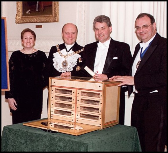 ![]() ![]() The Claxton Stevens Prize 2005From left to right: Mrs Jean Clark (Manager of Harrods Cigar Department), The Right Worshipful The Lord Mayor Locum Tenens Alderman Sir Michael Oliver, Martin Lane, The Master Mr E. R. Tadros. |