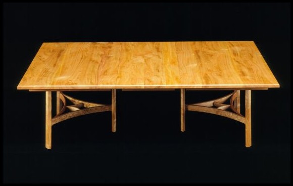 ![]() ![]() Dining TableMade of English cherry with a laminated underframe. In the centre of the table, a two foot centre leaf is accommodated. This centre leaf is removeable and can be stored on top of a sideboard. This enables the colour of all the pieces to mellow together in time.Please click here to view the matching sideboard. |