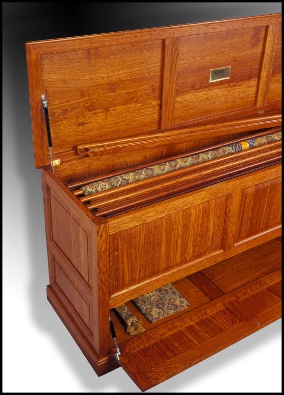 ![]() ![]() Sacristy CabinetThis cabinet was designed to accommodate altar clothes and vestments. It is made of English brown oak. Traditional fielded panels and moulded framing to match the interior of the church. There are gas struts to aid opening and closing the lid and the door. Brass grills are at the back, top and bottom to help with air flow throughout the piece. Brass fittings with a clear lacquered finish. |